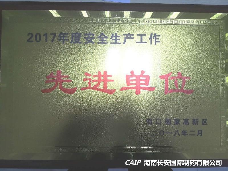 祝賀海南長(zhǎng)安制藥榮獲“2017年度安全生產(chǎn)工作先進(jìn)單位”等榮譽(yù)