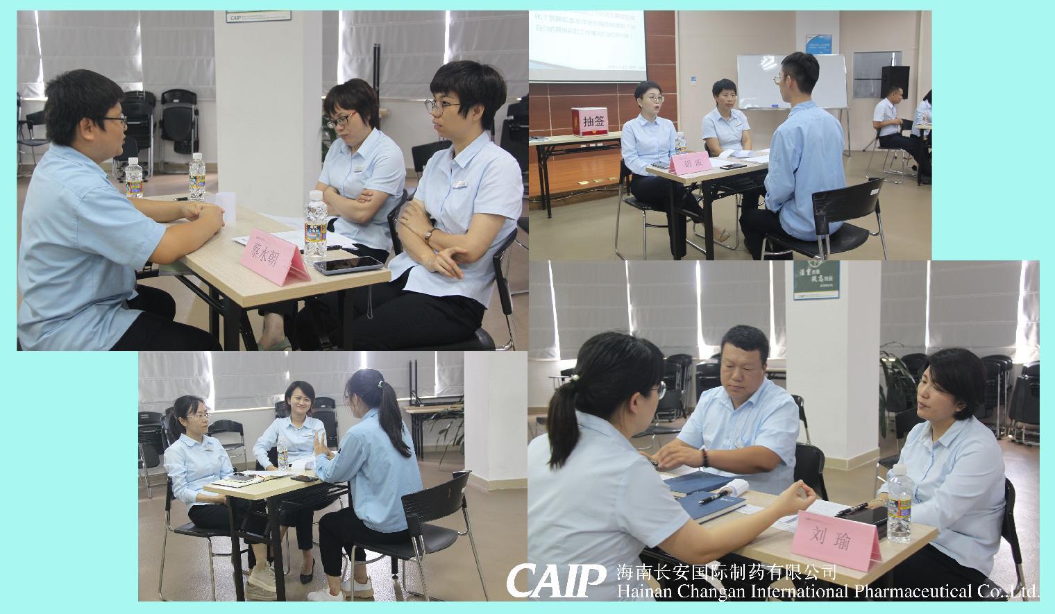 現(xiàn)場評估答辯分為三個環(huán)節(jié):自我介紹、現(xiàn)場必答題、抽簽答題。面試主考官由長安制藥中高層領導組成,每位新晉管理人員的面試主考官和第三個環(huán)節(jié)的答題都是由抽簽來決定,體現(xiàn)了公平公正公開的原則。