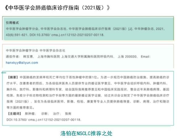 【洛鉑重磅】洛鉑進入最新版《中華醫(yī)學(xué)會肺癌臨床診療指南》2021版